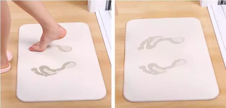 一般洗完澡出来用的都是普通的垫子,但是硅藻垫速干的速度是你无法想象的快,天然硅藻土的多孔结构,孔隙率高达90%以上,吸水量可以达到自身体积的2-4倍。即使水痕还在,但踩上去是干燥的天然泥土触感。(本文图片来源网络)