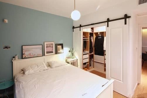 如果你的卧室比较大,可以考虑将房间的一部分改装成衣帽间。